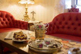 auf Stöfchen mit Kluntje und Wölkje (mit Kandis und Sahne), Kuchen oder frisch gebackenden Waffeln.