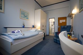 Diese Zimmer bieten Platz für einen Schreibtisch und eine gemütliche Sitzecke mit Sessel am Fenster. So können Sie das Spiel der Wellen beobachten und die Gedanken treiben lassen. Im Badezimmer finden Sie eine ebenerdige Dusche und eine elektrisch höhenverstellbare Toilette.
